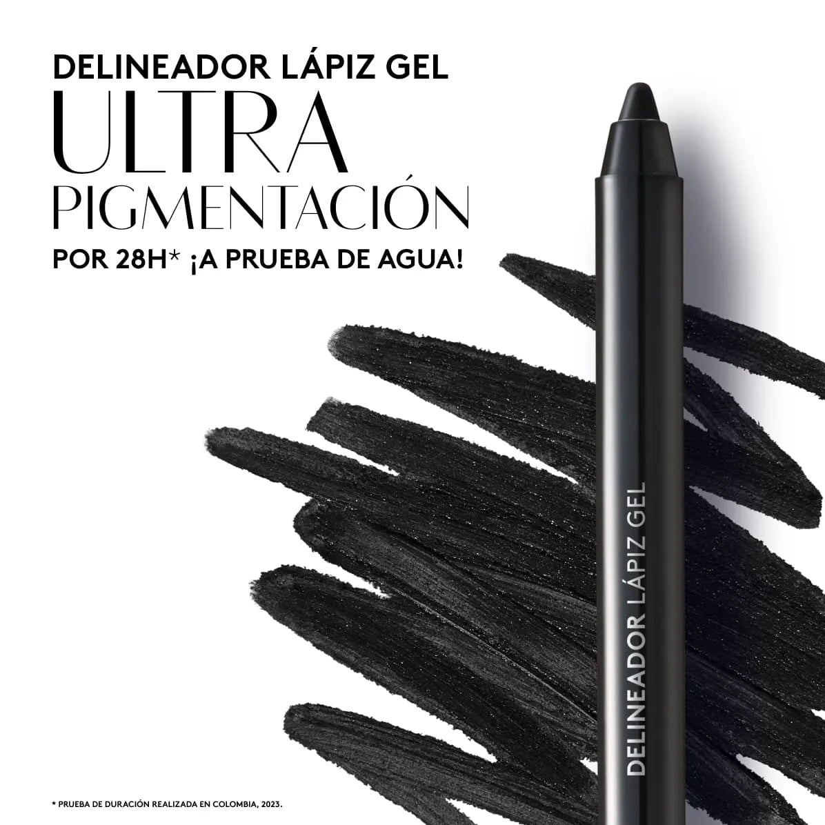 Delineador lápiz gel para ojos de ésika Pro. Ultra pigmentación por 28H* ¡A prueba de agua! Disfrua de su textura ultra cremosa** brinda un acabado con efecto gel a tu mirada con trazos suaves de fácil aplicación.