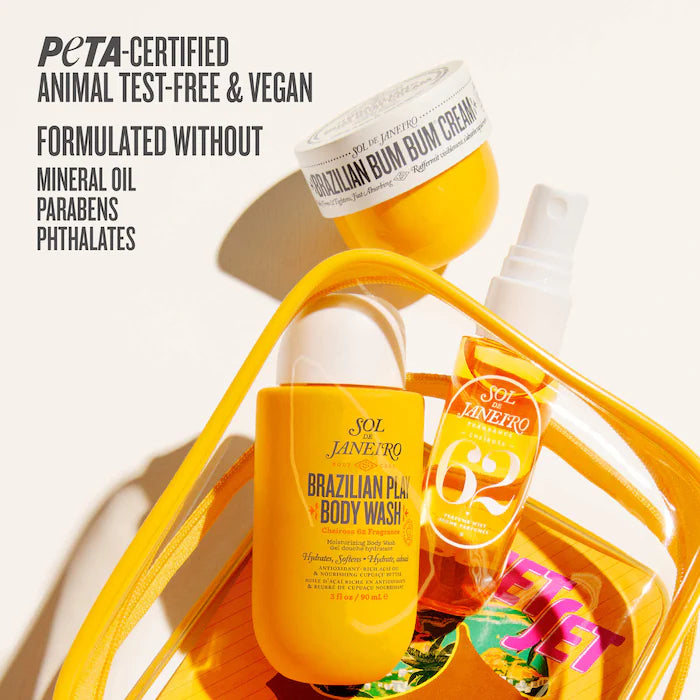 Una colección lista para viajar que ama el cuerpo y que está lista para volar con un trío de los productos más queridos en el aroma favorito de culto Brazilian Bum Bum Cream Cheirosa '62.